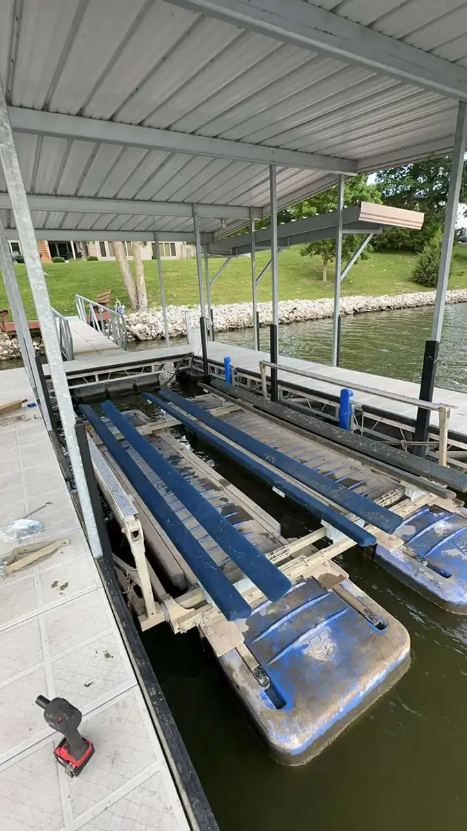 Explore our gallery to see the craftsmanship and quality that set Diversified Dock Services LLC. apart. This collection of past projects showcases the wide range of custom docks, boat lifts, covers, and accessories we’ve installed for satisfied boat owners throughout Springfield, IL, and beyond. Whether you’re looking for functional upgrades or inspired by sleek, modern designs, our gallery offers ideas to help you envision what’s possible for your waterfront. Each project reflects our commitment to durability, performance, and tailored solutions. No matter your style or setup, we can create a dock system that fits your needs perfectly. Let these photos spark your imagination—then reach out and tell us what you’re looking for. We’re here to bring your vision to life with custom solutions that protect your investment and make every day on the water easier and more enjoyable.